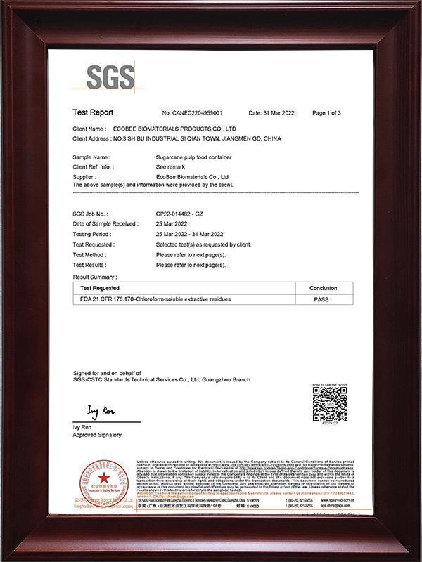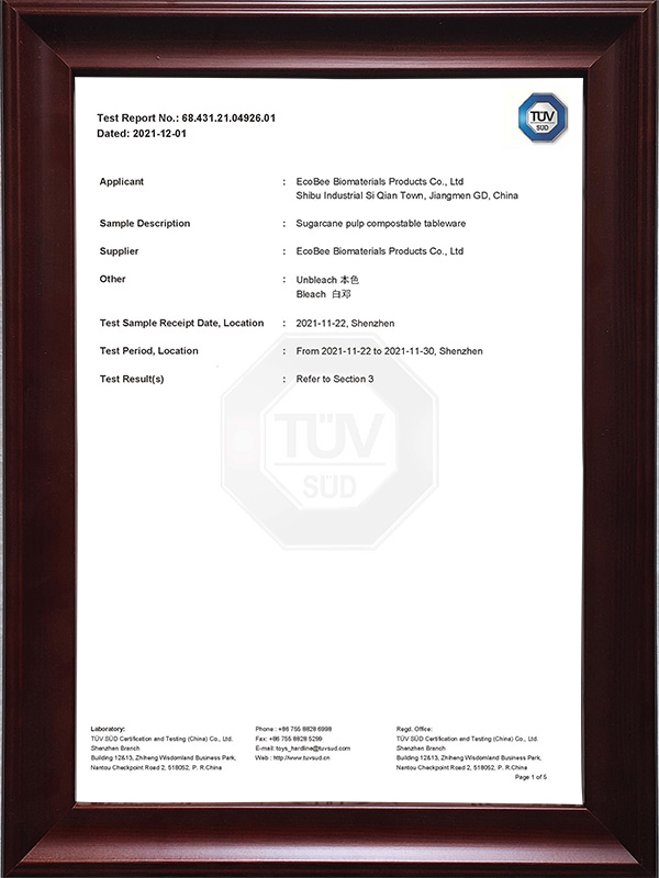 Our factories have got the Certificate of ISO: 9001, LFGB, FDA-SGS, EN13432, ASTM D6400, VINTOTTE-OK Compost, BPI, BRC, NSF Certificate.